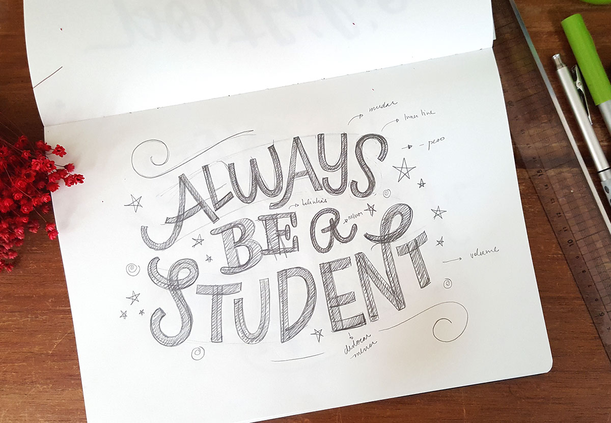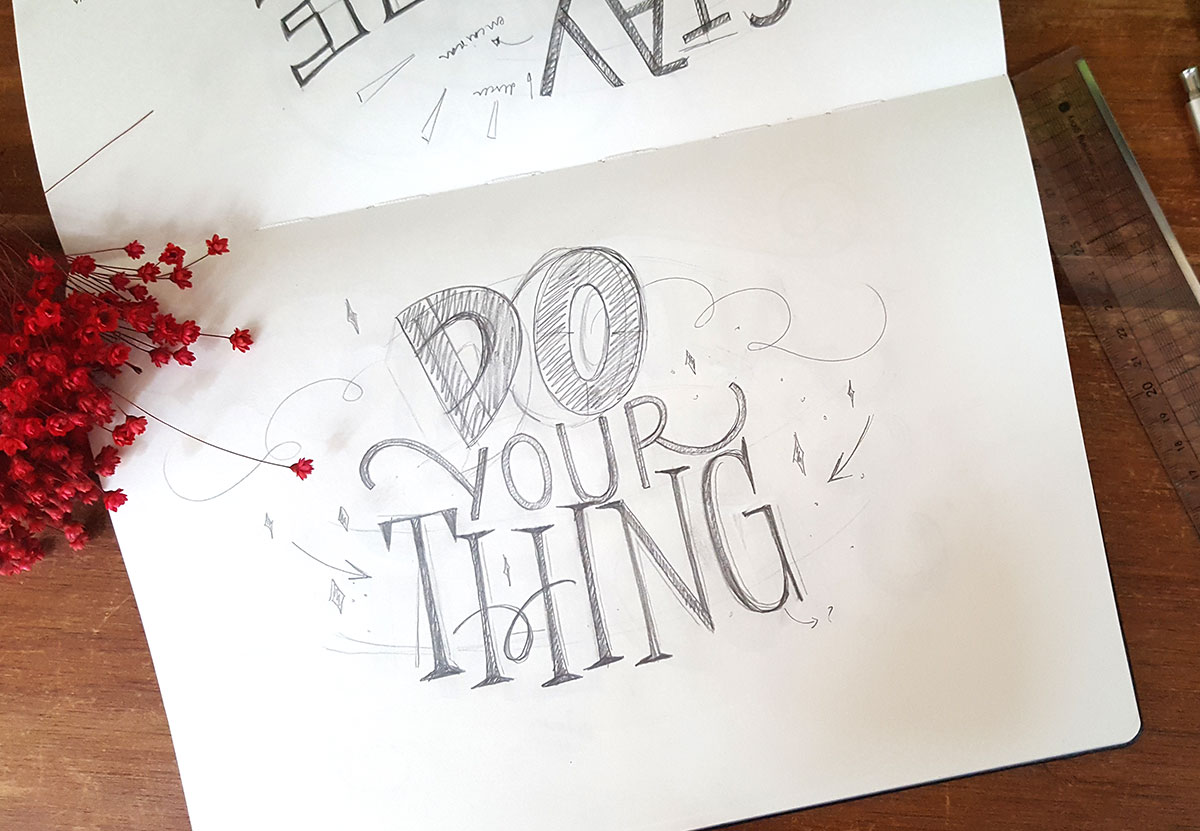 Eu gosto de letras. Gosto de desenhar letras, estudar letras e observar letras. Ao mesmo tempo, tenho alma de designer. Gosto de solucionar problemas, fazer pesquisa visual, trabalhar em conjunto com o cliente.