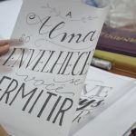 Outra novidade foram as palestras gratuitas para esclarecer dúvidas de quem tem interesse no curso, dar uma introdução sobre o que é a caligrafia e o lettering e como transitar por esses campos. Também contei por onde começar e como tem sido minha história com as letras. Além disso, na palestra damos uma chance a quem não tem condições para fazer o workshop de ter um primeiro contato com os livros e materiais que uso, e partilhar da minha experiência nesse mercado tipográfico.